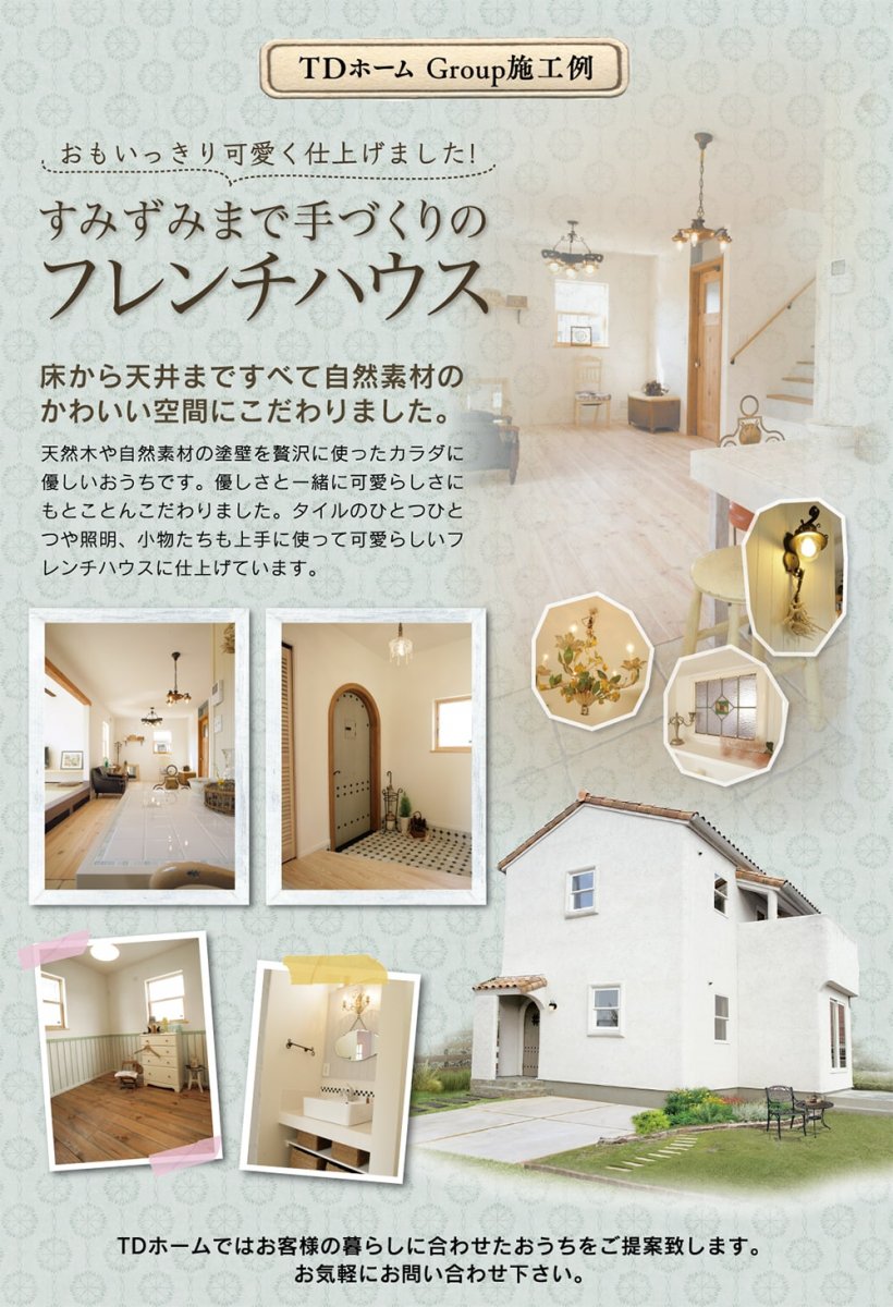 フレンチスタイル・プロバンススタイル・カリフォルニアスタイル(サーファーズスタイル)などの新築からリフォームまで、住まいの事ならお気軽にご相談下さい。