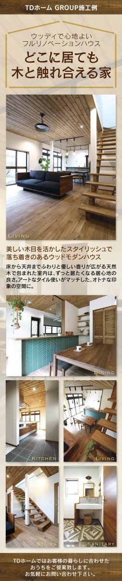 山口県 山陽小野田市、宇部市のTDホーム山陽小野田(株)樹工房では、新築(注文住宅)、リノベーションで、お客様の暮らしに合わせたおうちをご提案致します。高性能・省エネハウスはもちろん、長期優良住宅にも、私たちTDホームは対応しております。フレンチスタイル・プロバンススタイル・カリフォルニアスタイル(サーファーズスタイル)などの新築からリフォームまで、住まいの事ならお気軽にご相談下さい。