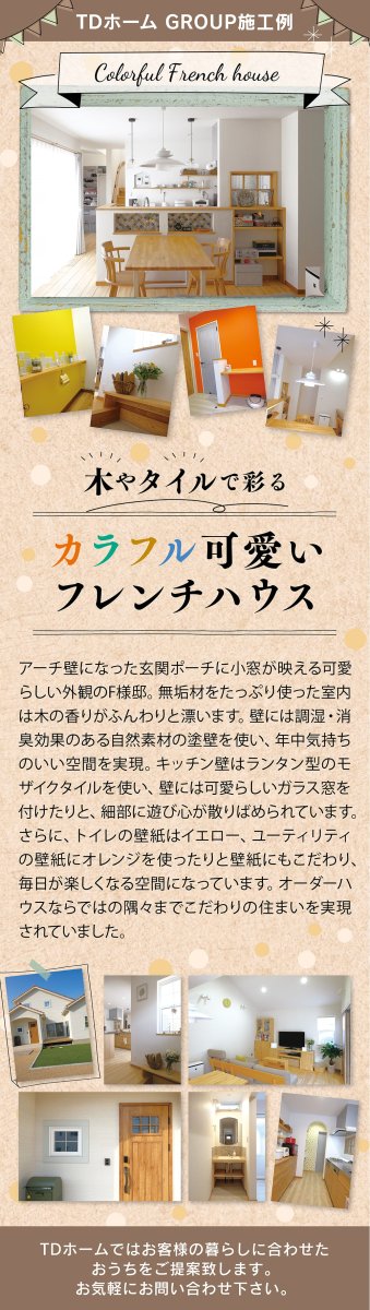 木やタイルで彩るカラフル可愛いフレンチハウス