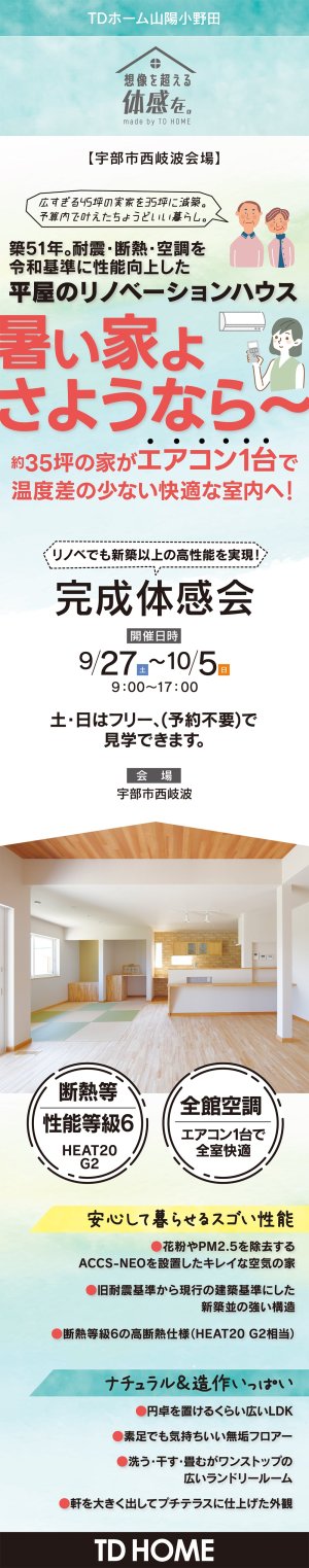 宇部市西岐波で、築51年。耐震・断熱・空調を令和基準に性能向上したリノベーションハウスの完成体感会を開催致します。