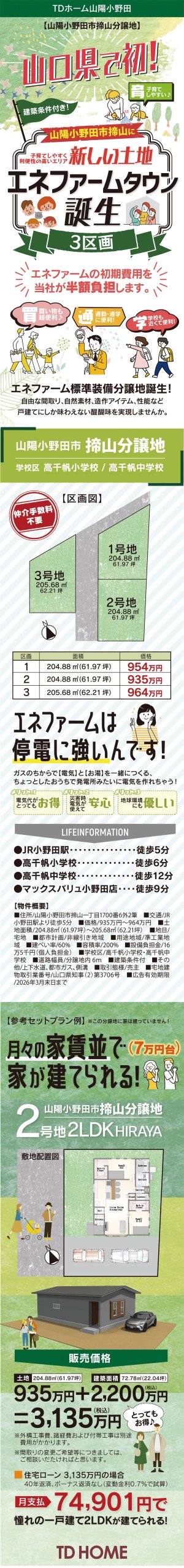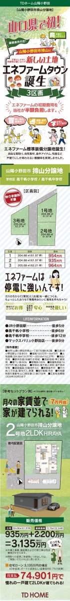 山口県で初!山陽小野田市揥山の新しい土地、エネファームタウンが誕生!全3区画。子育てしやすく利便性の高いエリアです。