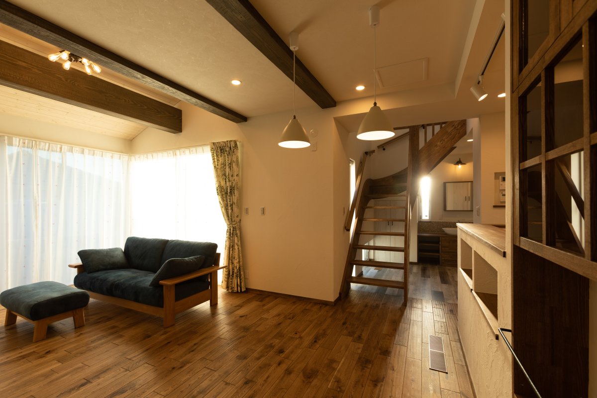・3種類の無垢フロアーを使ったこだわり空間