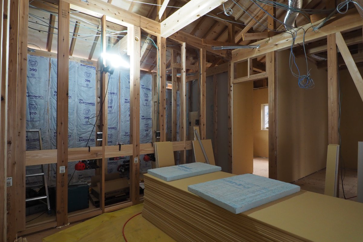 家づくりの現場公開中 高性能!コスパGOOD!デザイン&プラン力! かわいいだけじゃない! 蒸し暑い日でも室内はさらっと爽やか 地球環境にやさしく、自然素材たっぷり、また家事動線にもこだわったすまいです 工事前 基礎工事 建方工事 屋根工事 外壁工事 断熱工事 内部造作工事 仕上工事 完成・見学会 造作TV台(床下空調) 玄関ホール 造作洗面化粧台 キッチン トイレ パントリー 外観 外観 家づくりの現場公開中に戻る