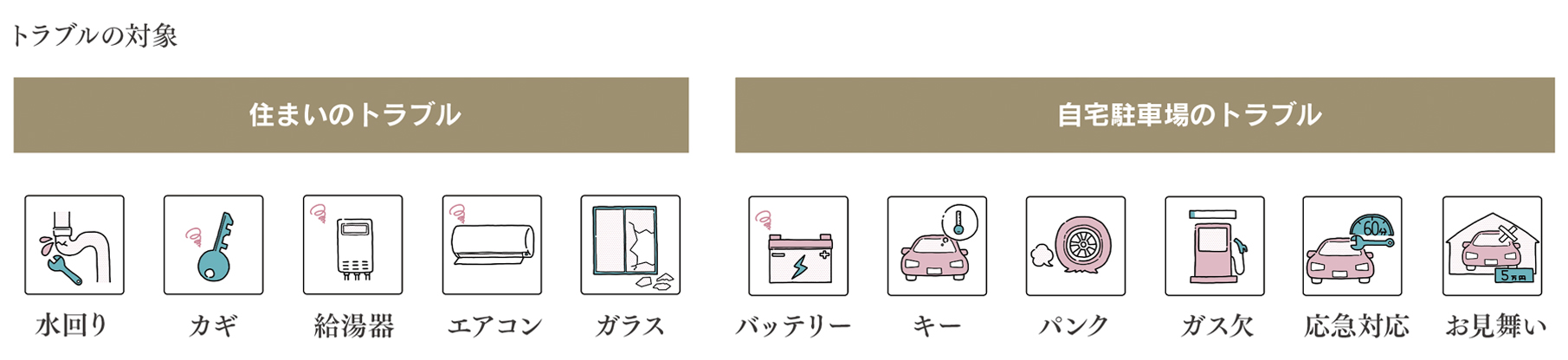 暮しに関わる日常のトラブルのご相談も、24時間365日の専用コールセンターで受付けします。 現場にかけつけ60分程度の応急対応を無料で行います。(お引渡しから10年間)